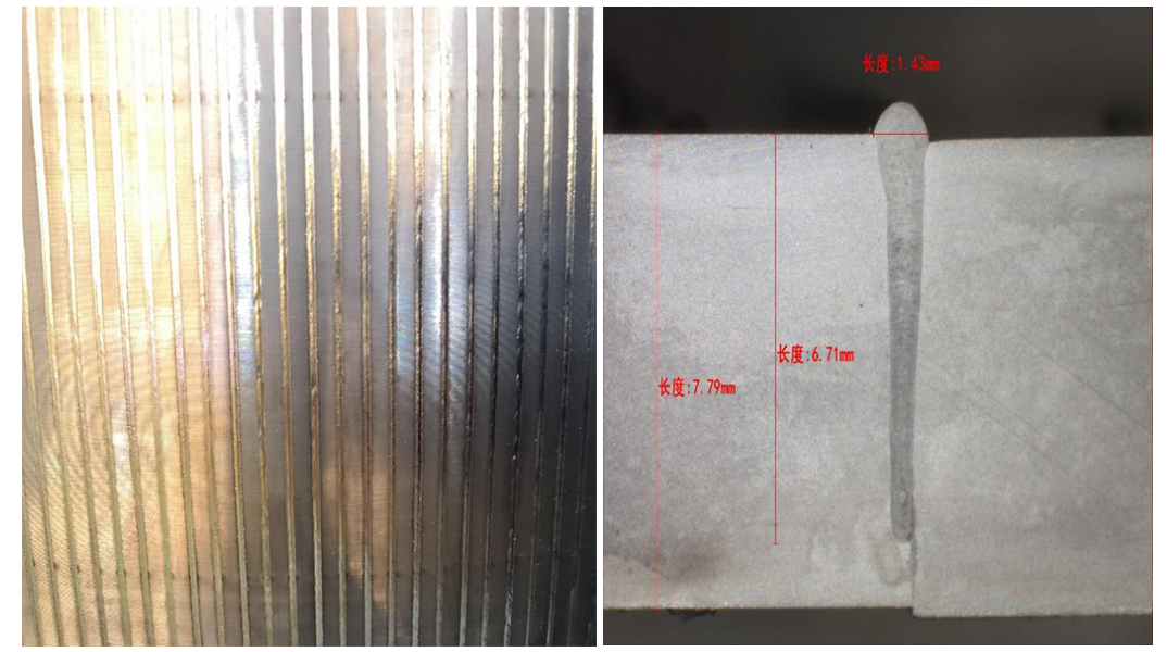 5.工藝性能好。大族激光開(kāi)發(fā)的焊接工藝很好地解決了大型薄壁工件超密集焊縫焊接形變問(wèn)題,工藝過(guò)程穩(wěn)定可靠;環(huán)形拼接焊縫:8mm厚GH4169&鎳焊透,起弧收弧平順,無(wú)明顯凹痕,單面焊接雙面成型,兼顧產(chǎn)品的強(qiáng)度與氣密性要求??蛇m應(yīng)各類(lèi)不銹鋼、高溫合金、銅合金、銅-鋼異種金屬、高溫合金-不銹鋼異種金屬焊接。