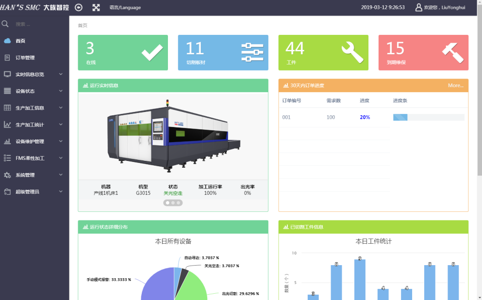 400-666-4000 大族激光智能裝備集團Han’s MeSys激光設(shè)備信息管理系統(tǒng),一套面向制造企業(yè)車間管理層的生產(chǎn)信息化管理系統(tǒng)??梢詾槠髽I(yè)提供包括訂單進度實時監(jiān)控、設(shè)備狀態(tài)管理、生產(chǎn)數(shù)據(jù)管理、零件損壞維保管理和FMS自動生產(chǎn)線監(jiān)控等管理模塊,為企業(yè)打造一個全面化信息管理系統(tǒng)。
