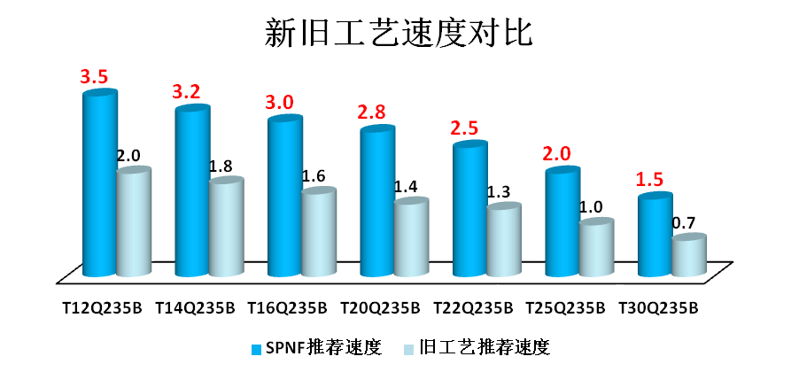 SPNF切割工藝的原理:使用能量密度與材料吸收率更高的負(fù)焦點(diǎn)光束垂直照射于板材,輔以光束同軸的超強(qiáng)氧氣氣流,能夠快速有效的將熔融金屬排出,從而實(shí)現(xiàn)快速切割。該工藝的優(yōu)點(diǎn)為:⑴切割速度快,經(jīng)濟(jì)效益高;⑵板材吸收率高,局部熱量積累小,更利于保護(hù)齒條和床身;⑶耗氣量?。?.8-1bar),成本低,氧氣更潔凈,不易污染管道,易損易耗件的使用壽命更長;⑷使用噴嘴的口徑大,不易發(fā)熱,切割更穩(wěn)定;⑸切割隨動高度高,割嘴、陶瓷環(huán)不易損壞。