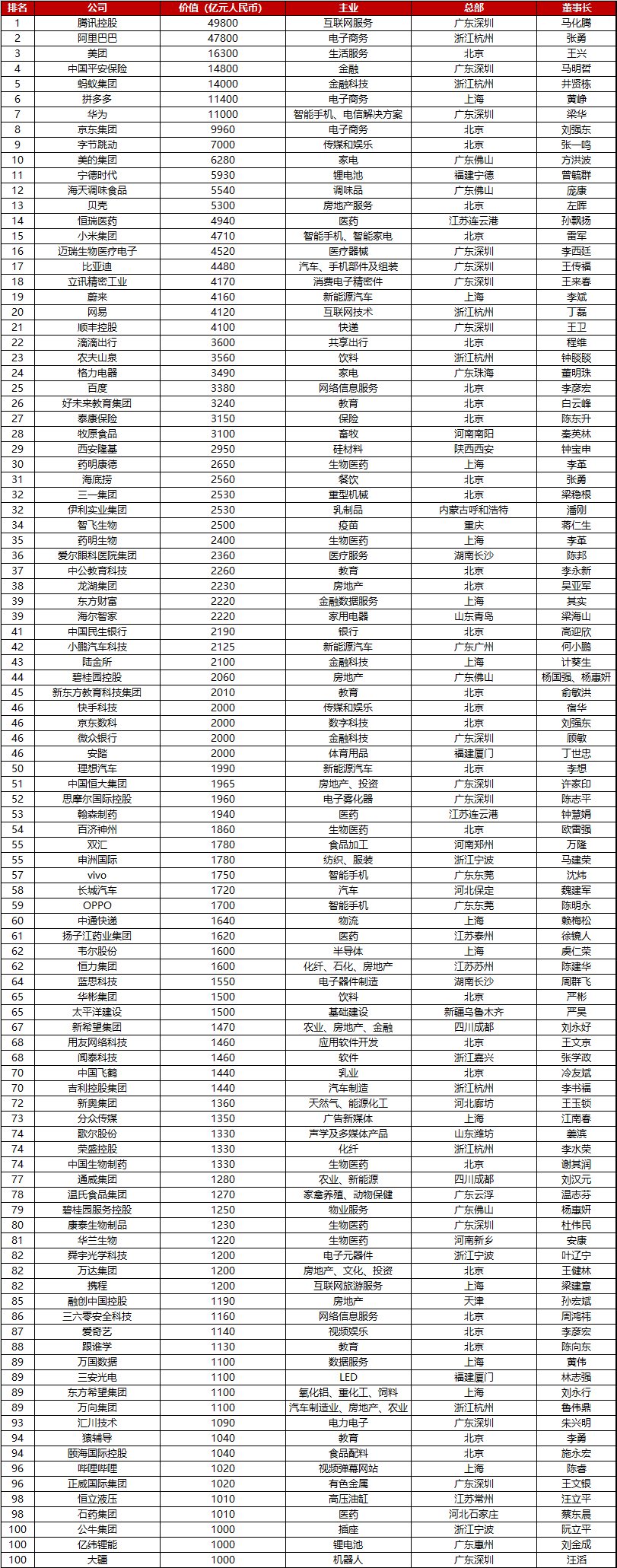 400-666-4000 11月25日,胡潤研究院最新發(fā)布了《胡潤中國500強(qiáng)民營企業(yè)》,公布了2020年中國排名靠前的500強(qiáng)民營企業(yè)。據(jù)胡潤研究院透露,本年胡潤500強(qiáng)榜單的上榜門檻為230億元,相比較去年提高了90億元,即64%。本次上榜企業(yè)的總價(jià)值共為56萬億元,相比去年增加了20萬億元,相當(dāng)于去年中國GDP的近六成;企業(yè)的平均市值更是達(dá)到1100億元,相比較去年增長了390億元,年增長55%,創(chuàng)歷史新高。