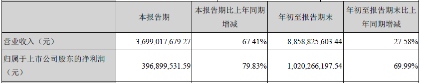400-666-400010月25日晚,大族激光科技產(chǎn)業(yè)集團(tuán)股份有限公司(以下簡(jiǎn)稱“大族激光”或“公司”)發(fā)布了2020年第三季度報(bào)告。報(bào)告顯示,大族激光第三季度營(yíng)收36.99億元,同比增長(zhǎng)67.41% ;歸屬于上市公司股東的凈利潤(rùn)3.97億元,同比增長(zhǎng)79.83%。