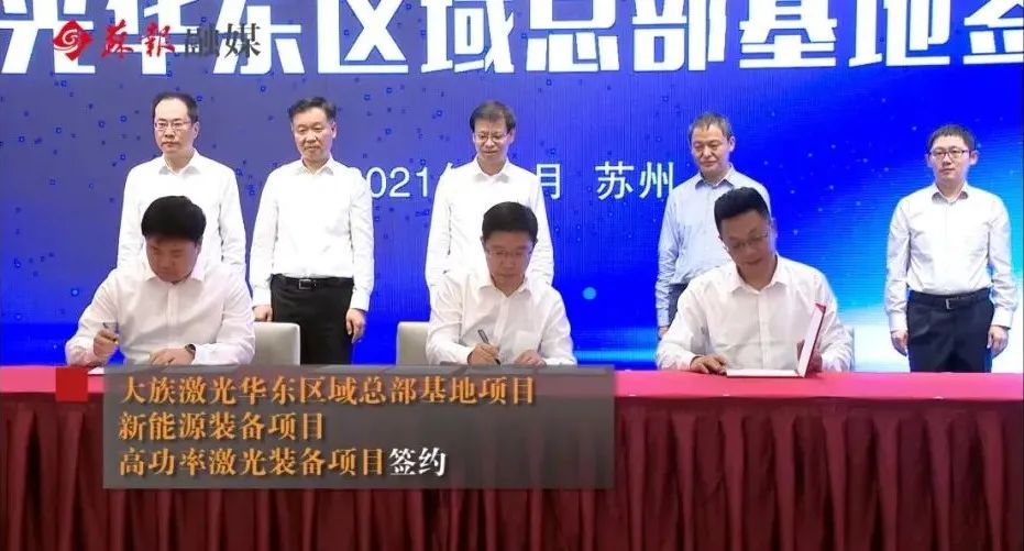 10月12日,大族激光華東區(qū)域總部基地簽約儀式在蘇州舉行,大族激光華東區(qū)域總部基地項目、新能源裝備項目、高功率激光裝備項目簽約落戶張家港。江蘇省委常委、蘇州市委書記許昆林、大族集團董事長高云峰出席活動并共同為大族激光華東區(qū)域總部基地揭牌。